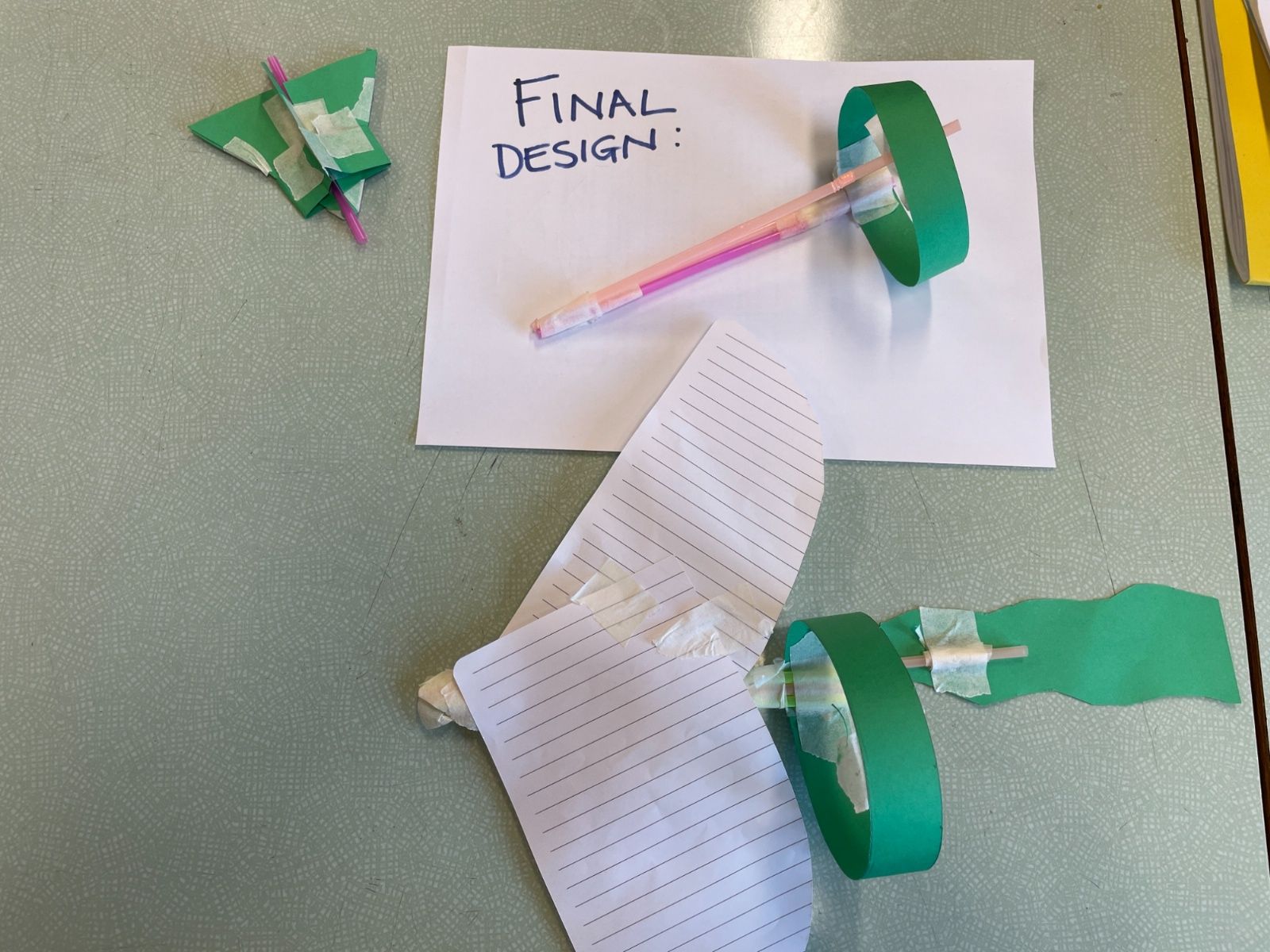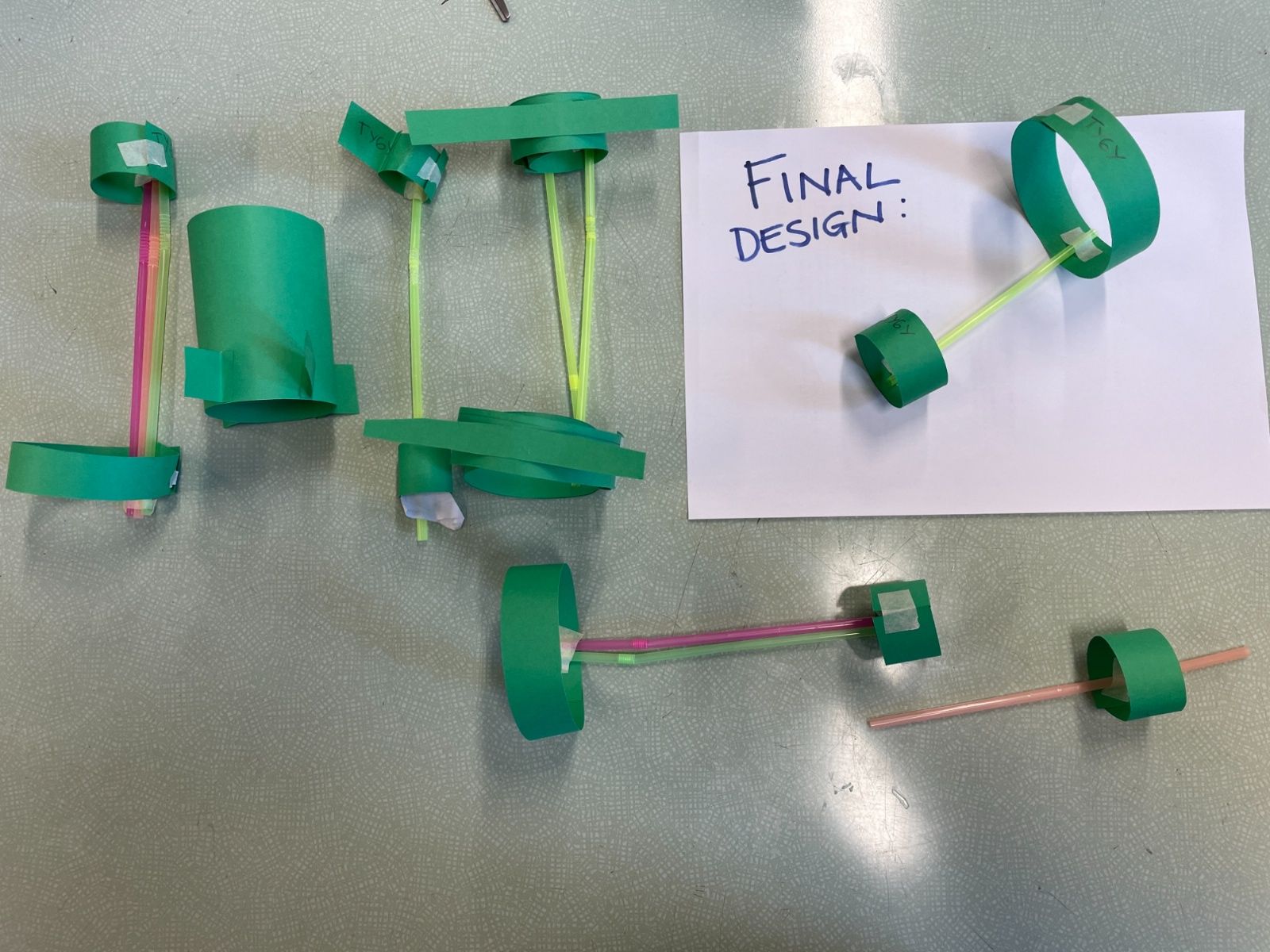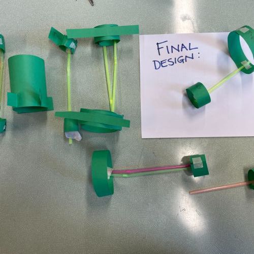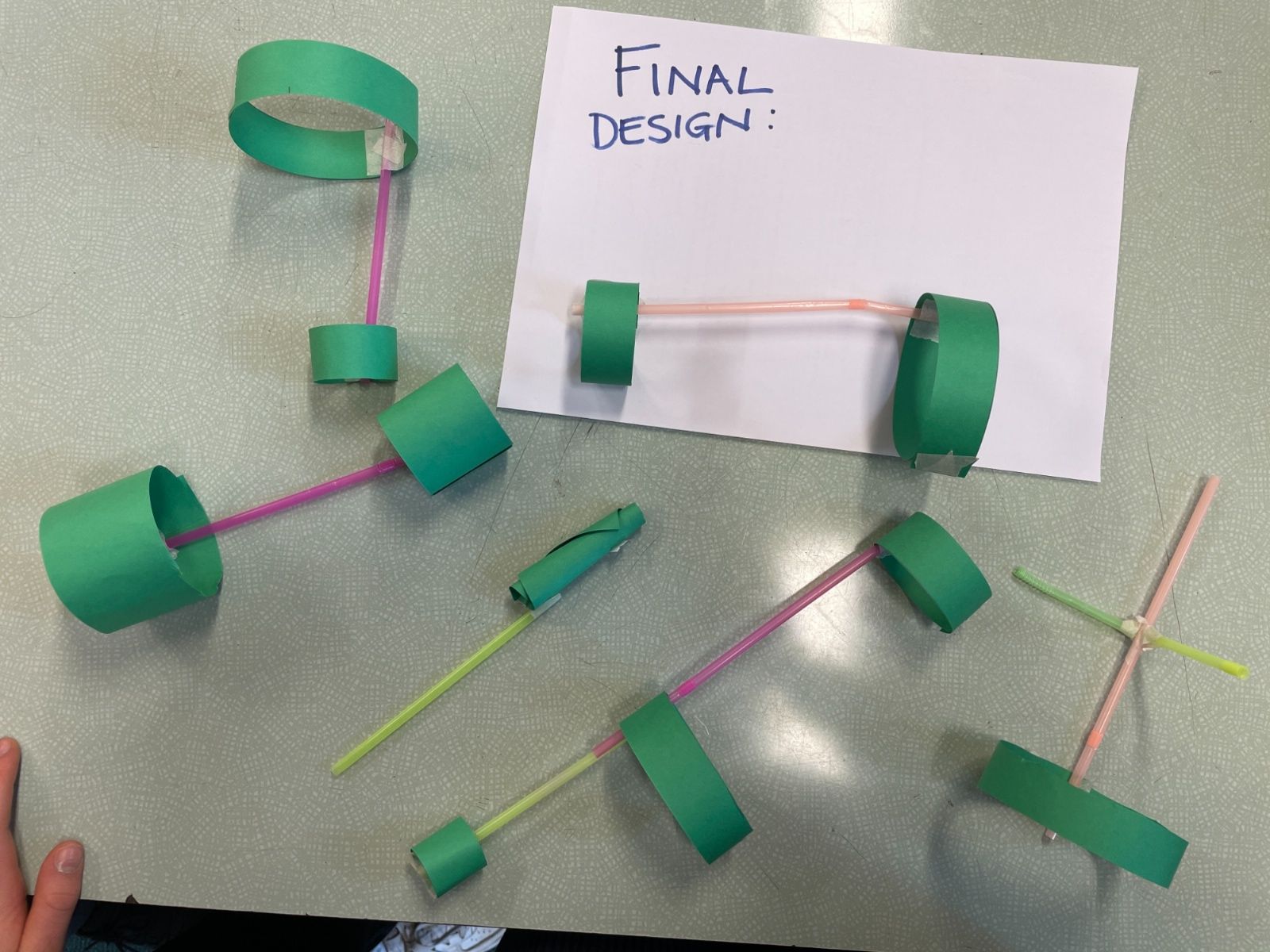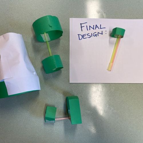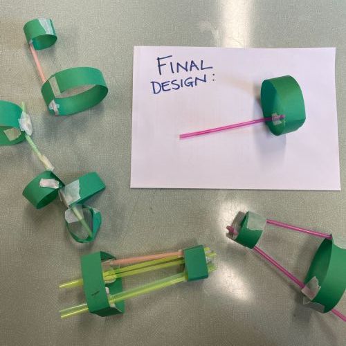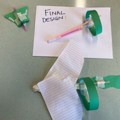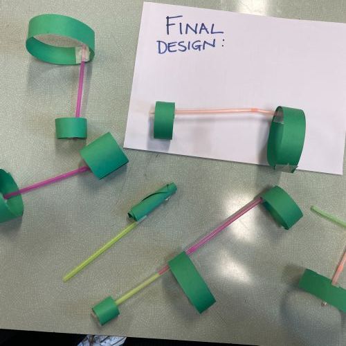 We all made a 'Hoop Glider' following a set of instructions.  Then we used this design to create other prototypes, trying to create other gliders that would fly further.  Here are our designs and results. We made a living bar chart!